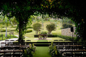 • Bancos e altar para cerimônia no jardim ou no deck matrimonial